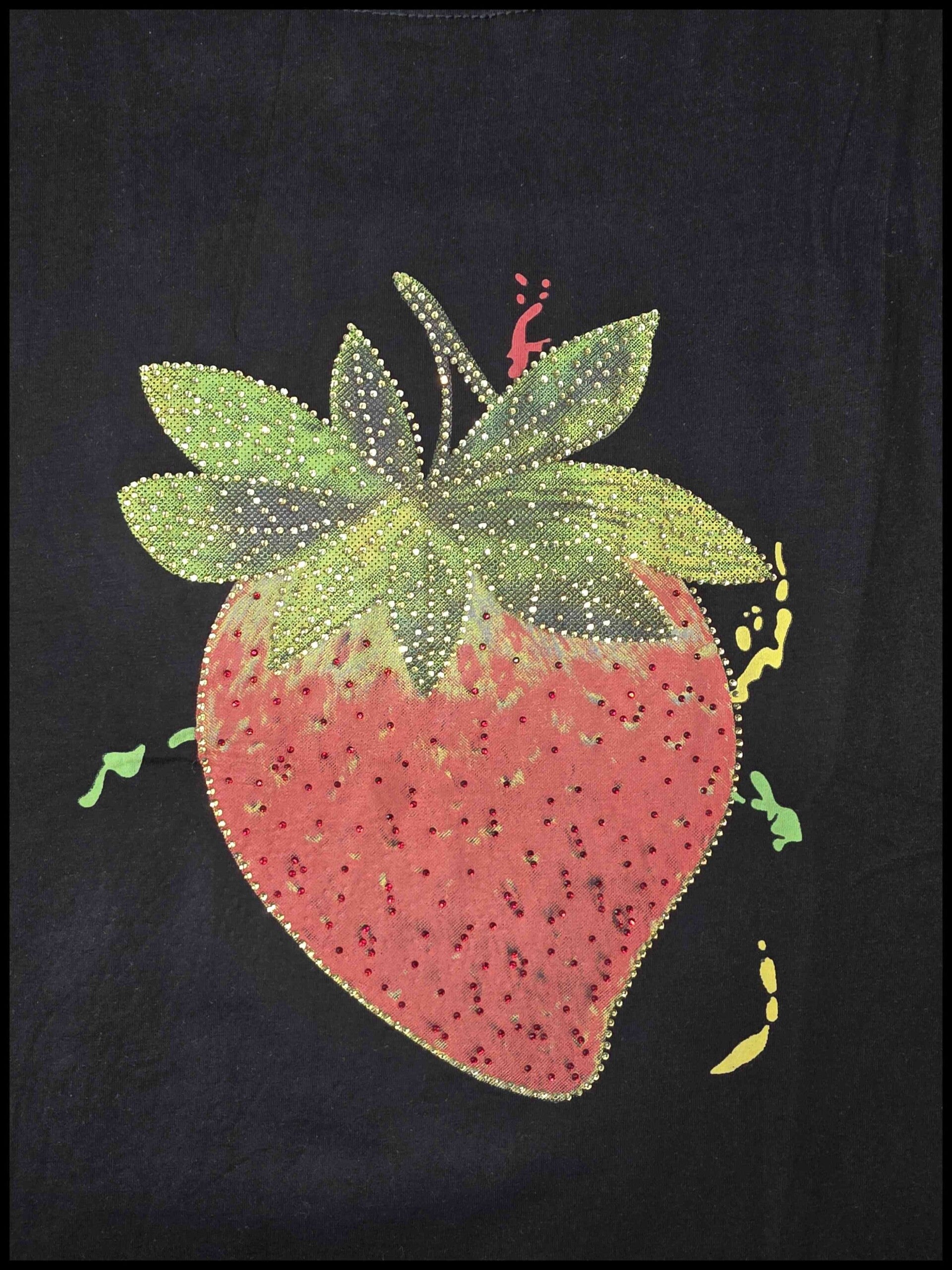 Blusa talla extra con fresa estampado y brillos
