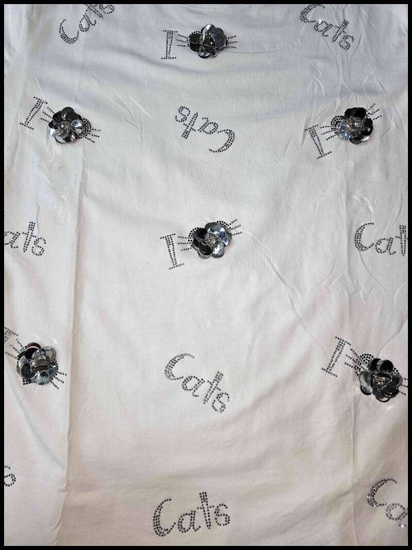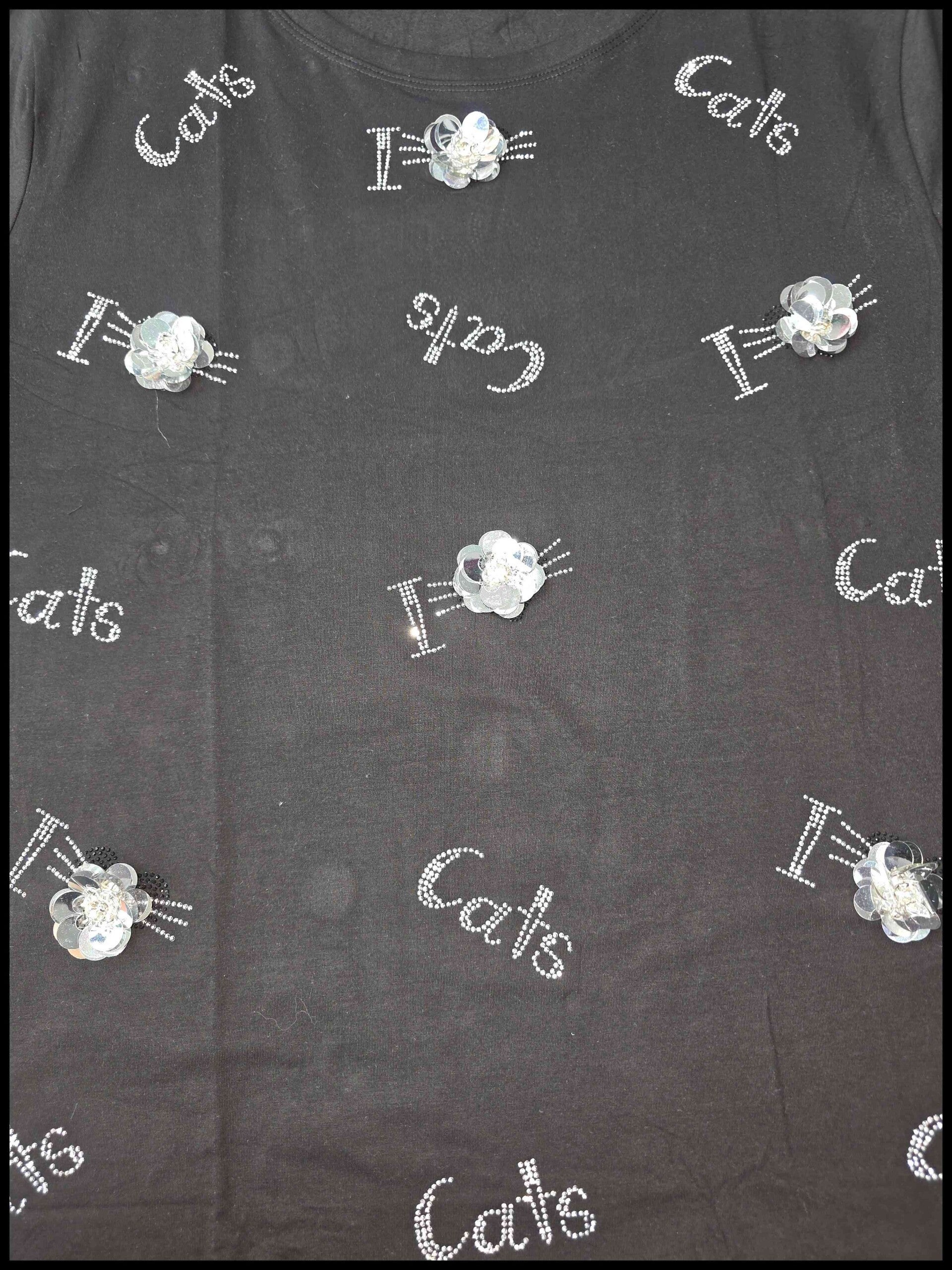 Blusa talla extra cats con lentejuela y brillos.